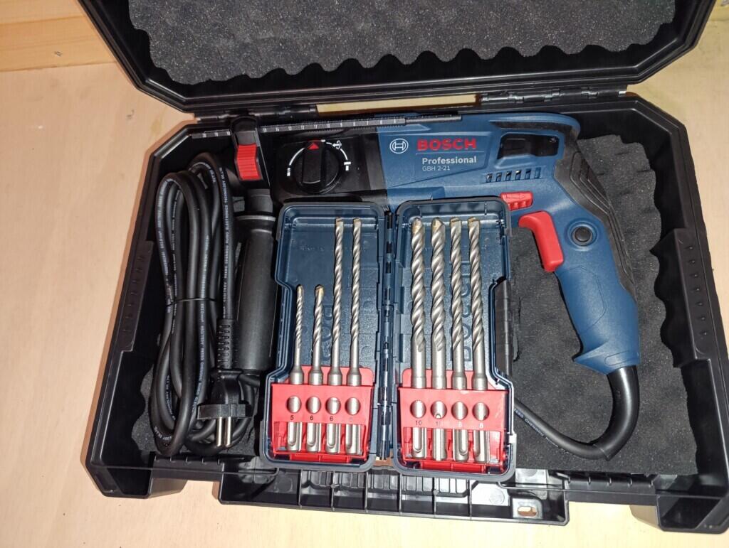 Bosch Professional perforateur GBH 2-21 (SDS plus, avec poignée supplémentaire, chiffon, butée de profondeur.