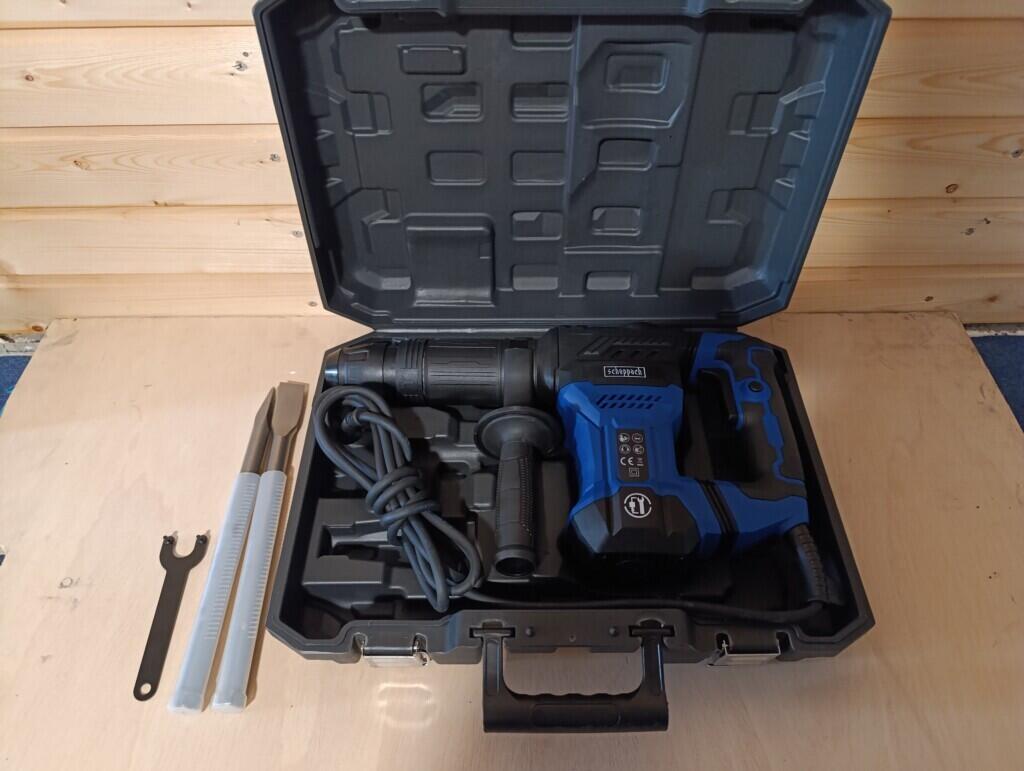 Scheppach Marteau de démolition AB1500x | Marteau à percussion | Puissance de frappe 20J | 1300W | SDS-Max | 4100 BPM | 6kg léger | Burin pointu, plat et coffret inclus