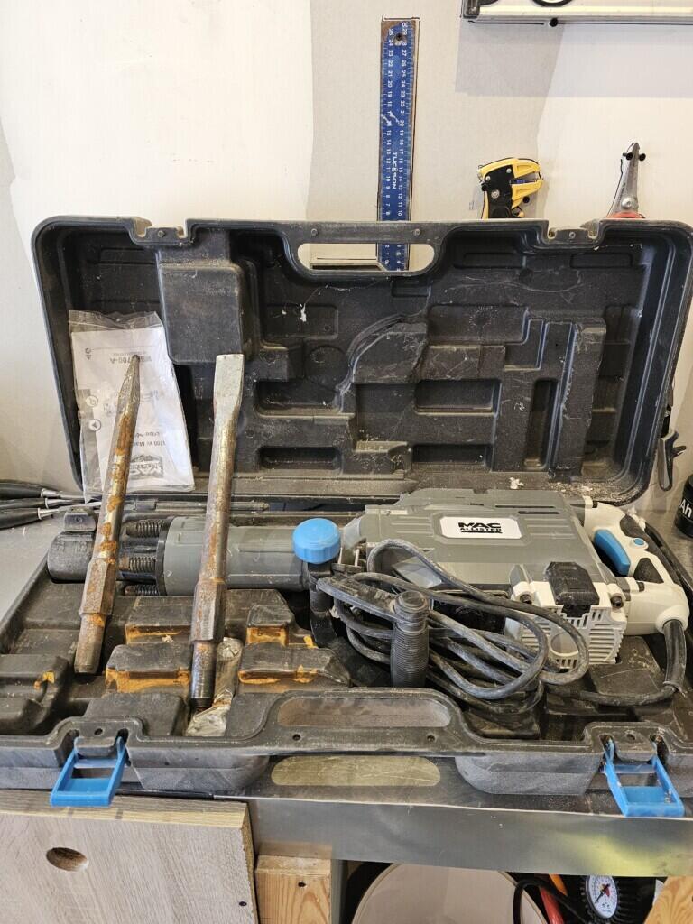 Marteau piqueur robuste fournie avec 2 burin 1 plat et un pointu .