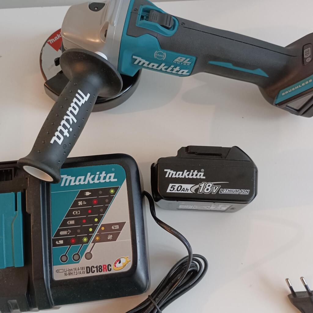 Meuleuse d'angle DGA, brushless maniable et légère. Très pratique et efficace. Fournie avec une batterie 5ah et un chargeur rapide.