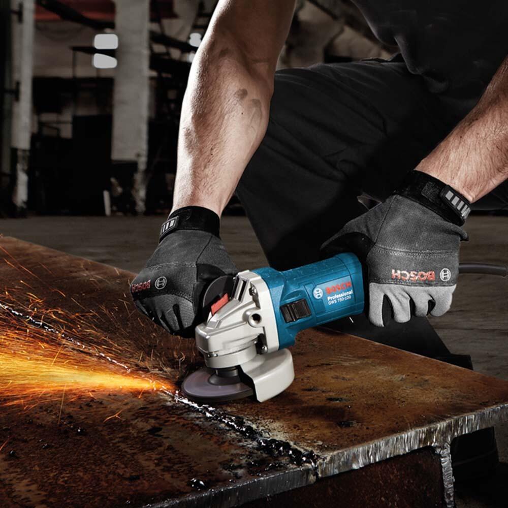 Meuleuse professionnelle Ø125mm pour découpe, ponçage et ébarbage de la pierre, le béton, la brique, mais aussi l'acier, l'inox, ou encore le bois. La meuleuse est fournie avec son disque diamant pour la découpe des matériaux minéraux, les disques de tronçonnage pour métaux, les disques de ponçage, d'ébarbage, et autres consommables peuvent être fournis en supplément.