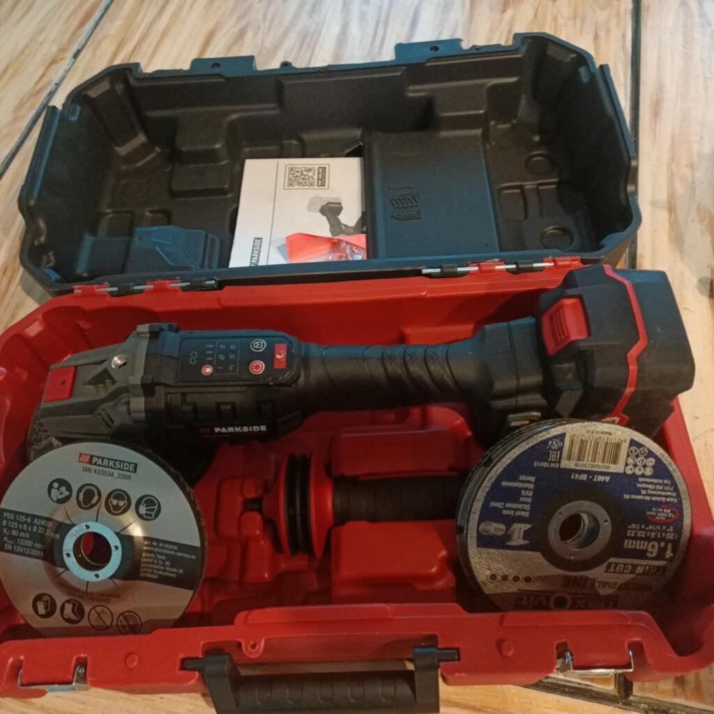 Je loue cette meuleuse d'angle diamètre neuve acheter le 20 octobre louer avec une batterie grande capacité avec chargeur charge rapide dans son coffret ainsi que les outils de démontage des disques. Disque toutes matières en supplément selon vos besoins , batterie supplémentaire en supplément