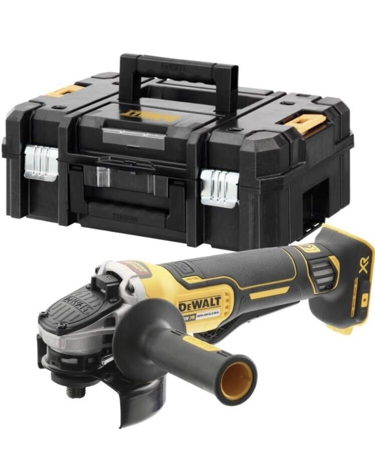 Meuleuse neuve dans son coffret + 1 chargeur + 2 batteries + 2 disques métal + 1 disque diamant + poignet à visser + clé de serrage + notice .