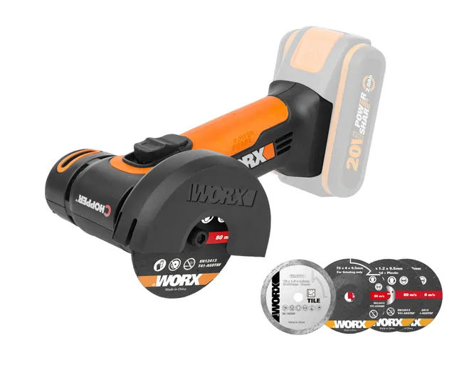 Comprend 1 batterie de 20 V 2 Ah, 2 disques de coupe pour métal, 1 disque de coupe diamant, 1 disque de démontage