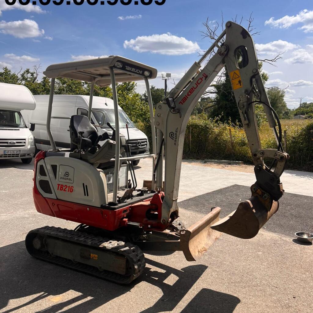 Mini Pelle Takeuchi TB – 1,8T disponible pour vos travaux de terrassement Idéale pour vos chantiers en accès restreint, la mini pelle Takeuchi TB est à disposition pour tous vos travaux de terrassement, tranchées, décaissements, préparation de terrain, etc. Deux outils complémentaires sont également disponibles : une tarière hydraulique avec deux mèches ( mm et mm), ainsi qu’une pince à bois hydraulique. Un camion benne peut également être mis à disposition sur demande pour faciliter l’évacuation ou l’approvisionnement de matériaux.