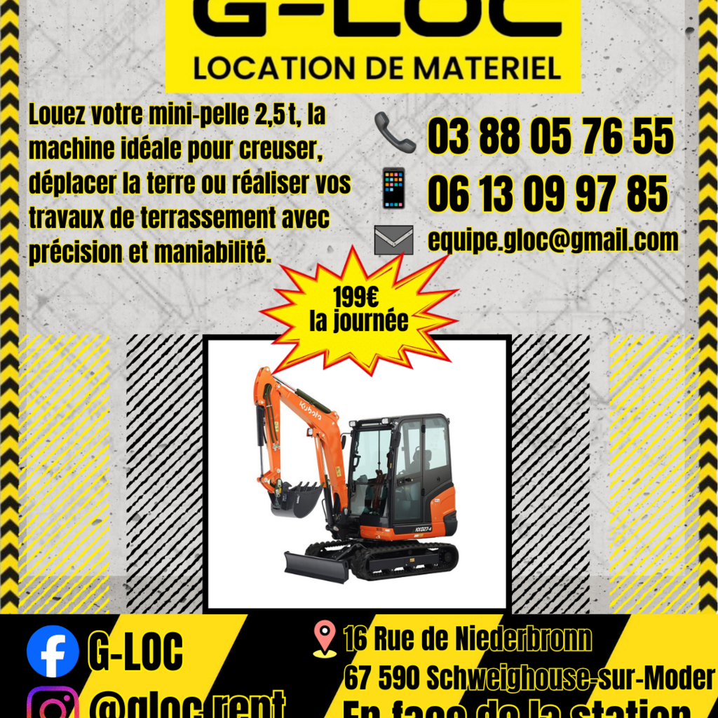 Mini-pelle 2T5, puissante, polyvalente et idéale pour vos travaux de terrassement, fondations, tranchées ou aménagements paysagers. Parfaite pour allier force et précision sur tous types de chantiers.