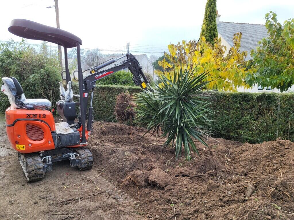 Mini pelle 1T , divers accessoires disponibles : tarière, rateau ,tilt 60cm , curage 80cm , curage à dent en 20 et 40cm.