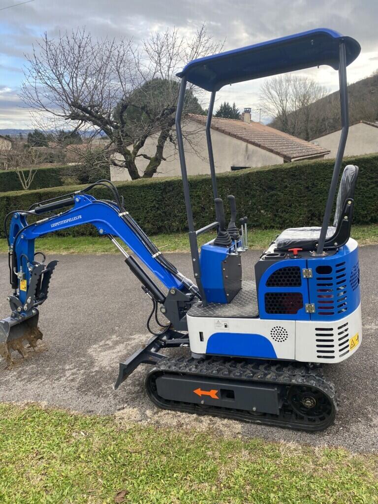 Mini pelle 1 tonne. Lame et chenilles 98 cm. Profondeur : 1,50 m.
