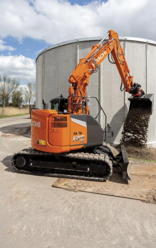 Pelle hitachi sur chenille location avec godet curage 1m80 terrassement de 100cm et tranchet de 60cm autre godet sur demande possibilité tilt ou rototilt