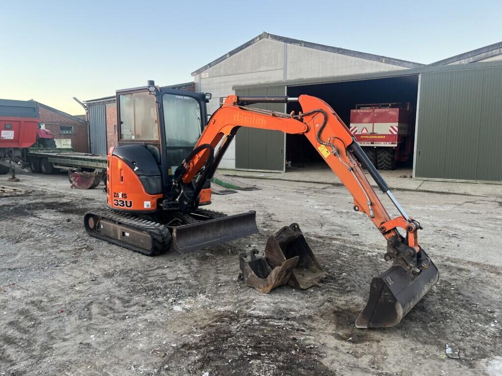 Mini pelle hitachi 3,5 tonnes avec 3 godet curage de 1m30, tranchet de 55 et 30 cm