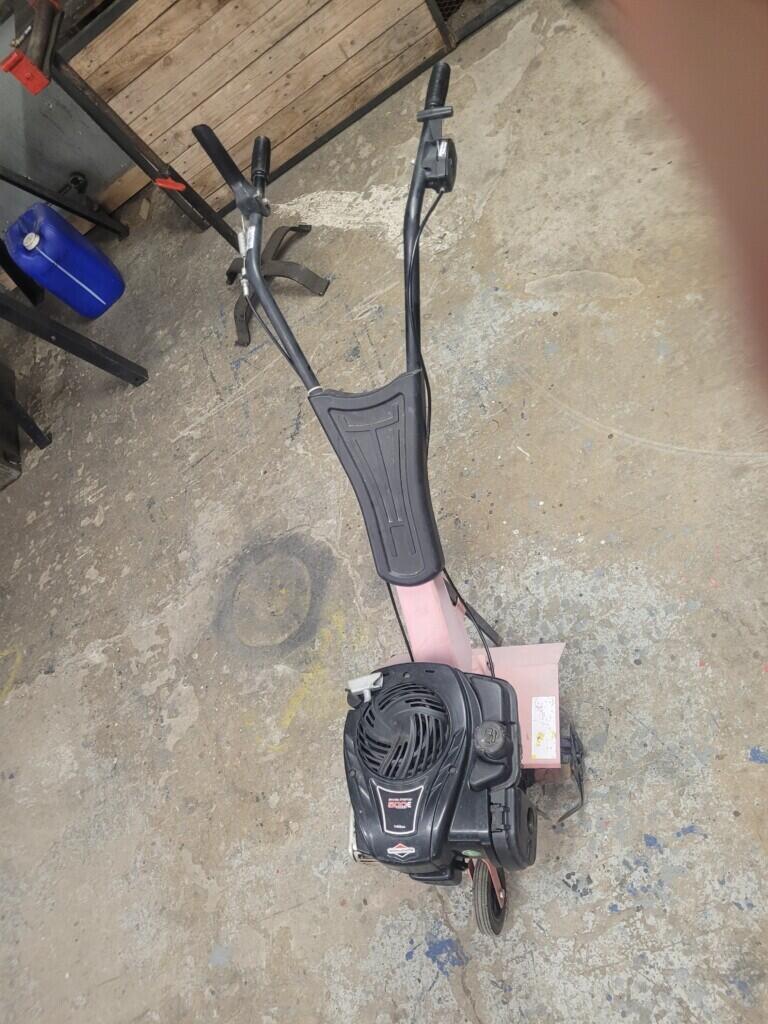 Petite motobineuse facilement manœuvrable et portable par une personne seule.