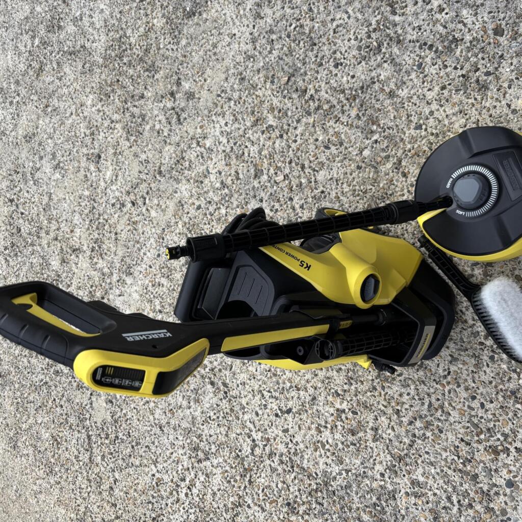 Karcher bar, assez puissant pour vos nettoyages. Il y a une brosse pour les terrasses extérieures et une brosse pour la voiture.