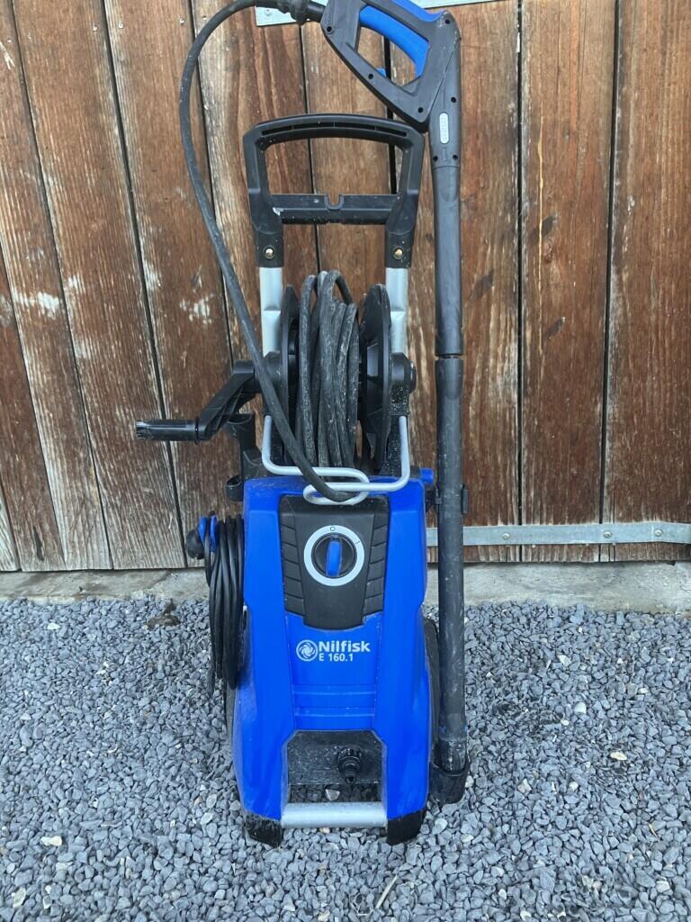 Nettoyeur haute pression 160 bar avec plusieurs buse et tuyau enroulable de 10 ml très pratique pour ne pas déplacer sans cesse le nettoyeur