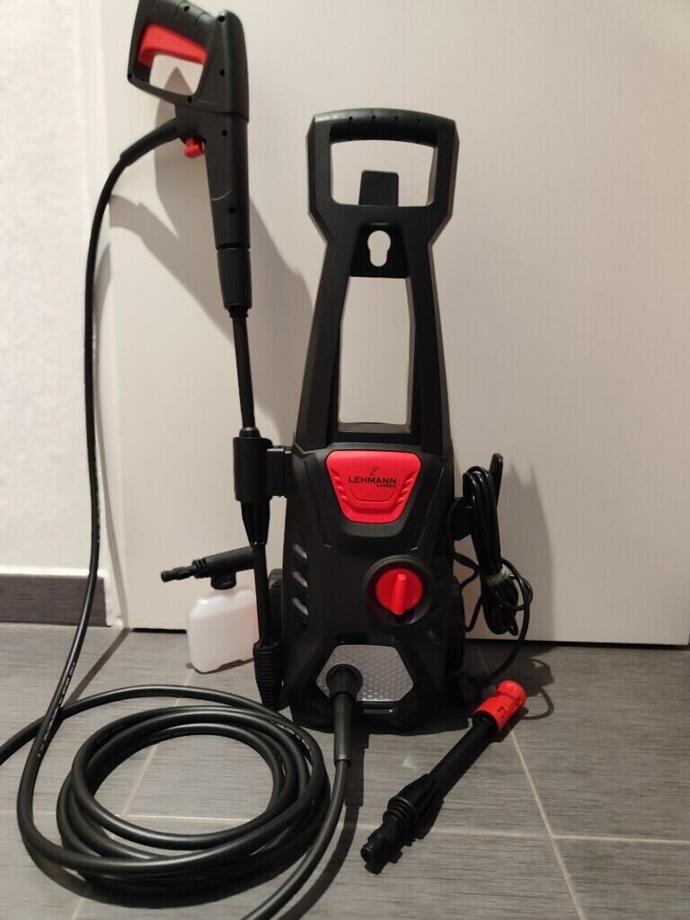 Nettoyeur haute pression 130 bar à 200 bar mode turbo, 480 litres/heures, 1600 W, lance ajustable, lance turbo, tuyau de 5 mètres, lance à mousse. Poid 4.5kg