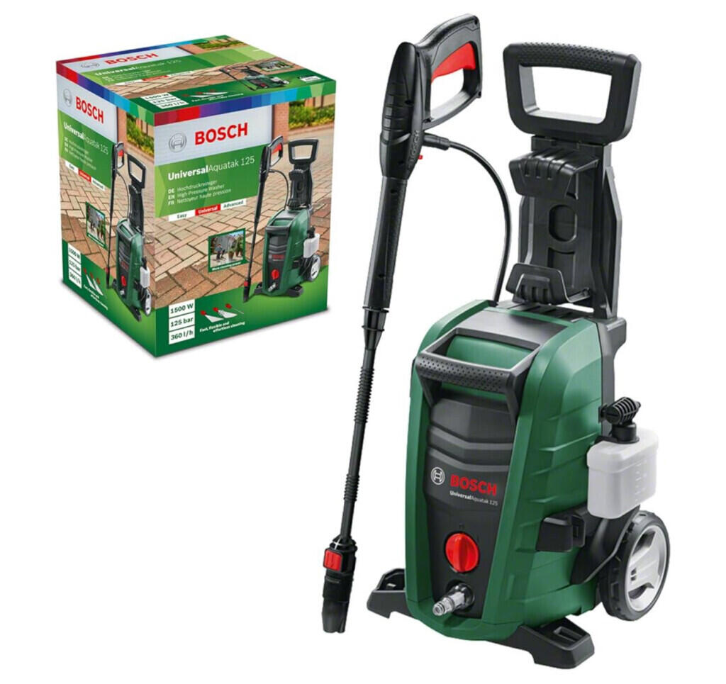 Bosch Nettoyeur Haute-Pression UniversalAquatak 125 (1500 W, Pression: 125 Bar, débit Maxi: 360 l/h, 2 Buses, Tuyau de 5 m, câble de 5 m)