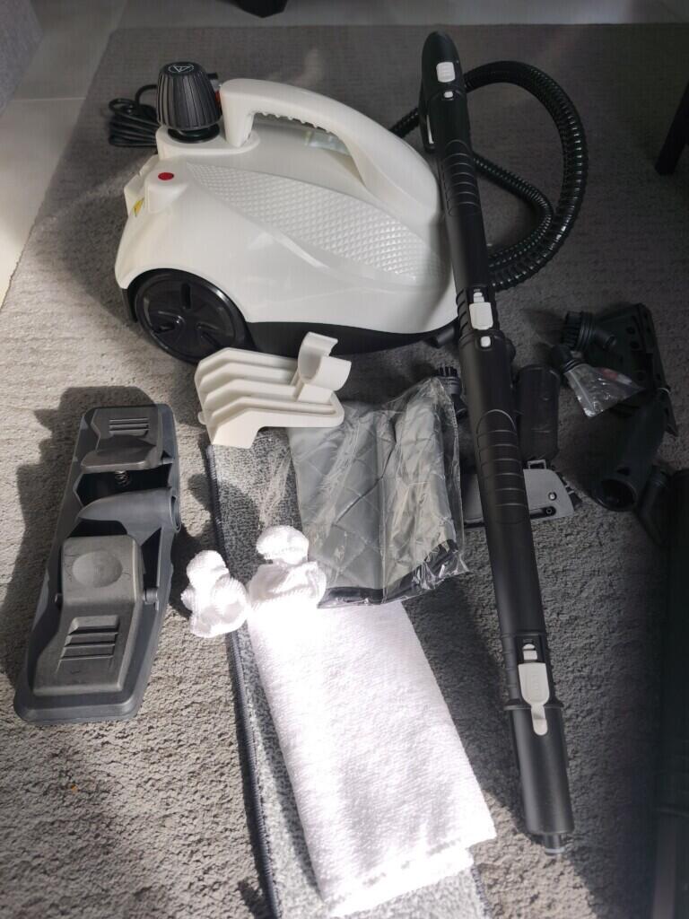 Nettoyeur vapeur multifonction avec grand réservoir d'eau pour les sols, tapis, sanitaires, baies vitrées etc…