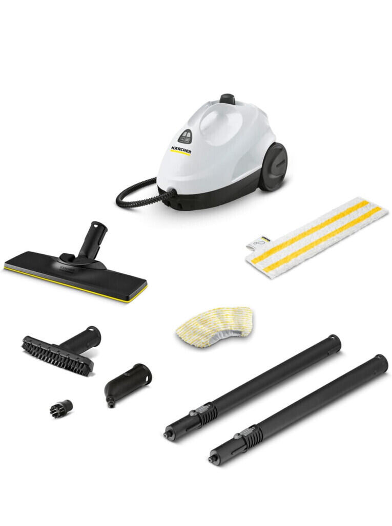 Kärcher Nettoyeur Vapeur SC 2 EasyFix Blanc, Pression Vapeur : 3,2bar, Temps Préchauffage : 6,5min, Puissance : 1500W, Surface : 75m², Réservoir : 1l, Set de Nettoyage de Sol EasyFix & Buses