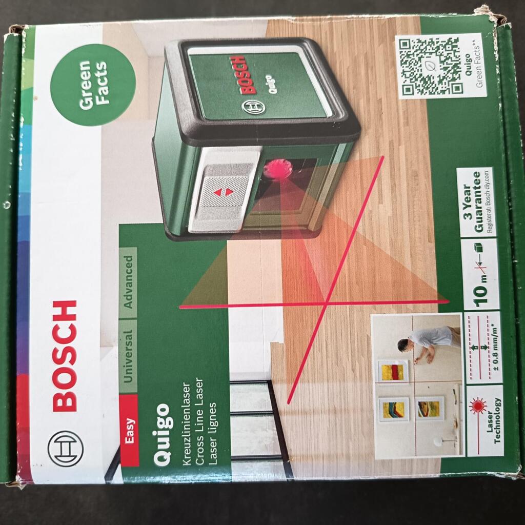 Niveau laser Bosch Quigo à poser ou fixation par pince. Portée 10m , positivement varié grace à sa pince.auto nivellement. Projection en croix .