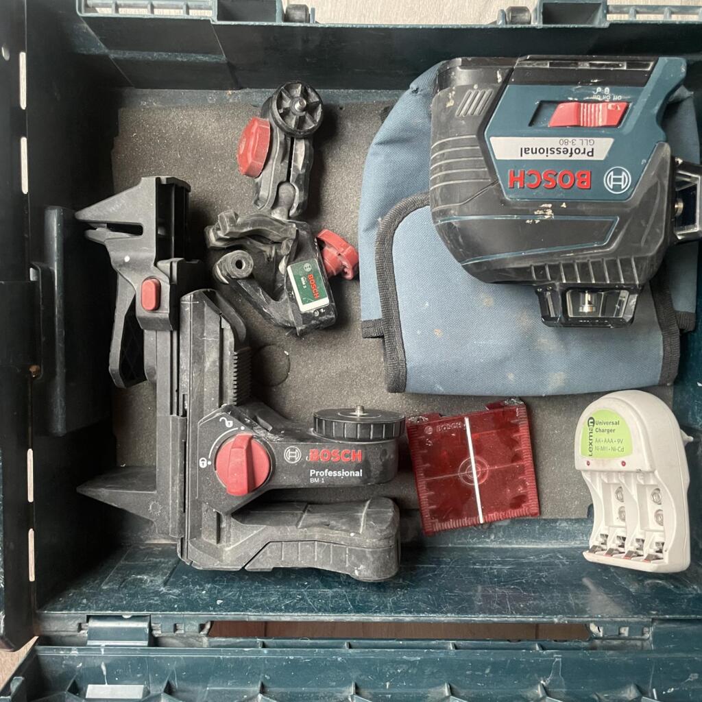 Niveau laser fonctionnant avec des piles rechargeables fournies avec le chargeur.