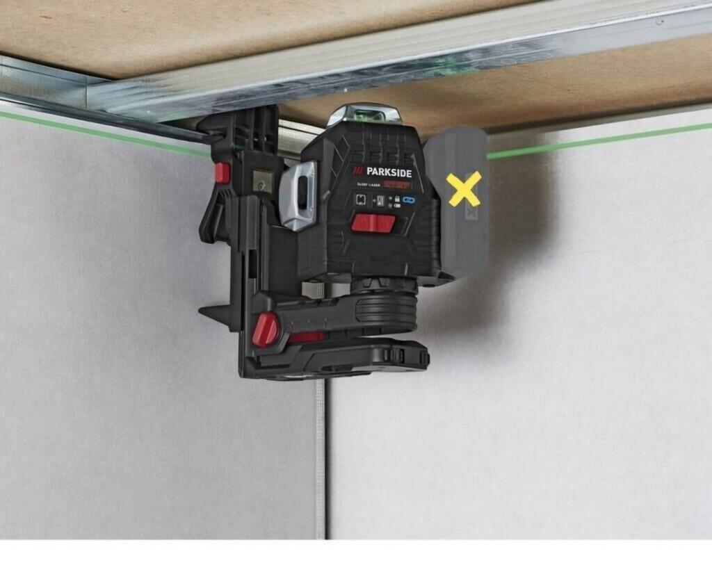 Propose à la location un niveau laser à croix de la marque parkside performance. Il est loué avec une pince de fixation, une cible, 1 batterie et son chargeur.