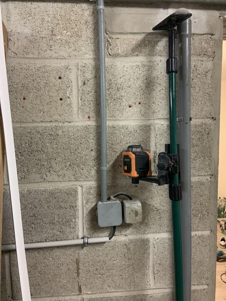 Niveau laser avec perche télescopique. Et trépied également.