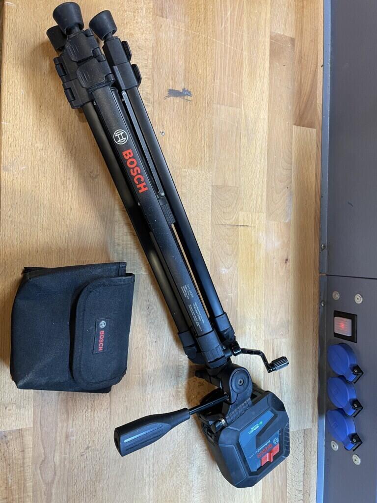 Matériel fourni avec son étui de transport et un trépied Bosch. Prêt à l’emploi