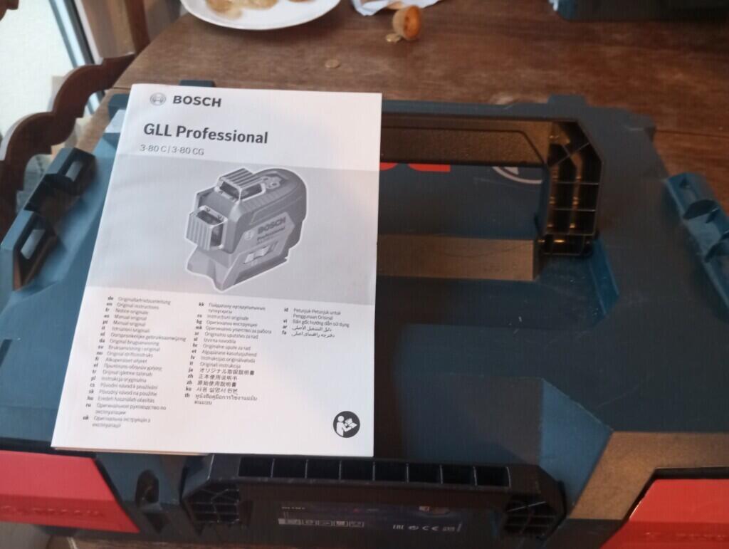 Laser Bosch professionnel couleur tracé rouge pour implantation d ossature métallique, cloison, faux plafond , plancher etc… 3 *360 avec support aimanté réglable et crochet pour ‘a réalisation des plafonds, planchers notamment
