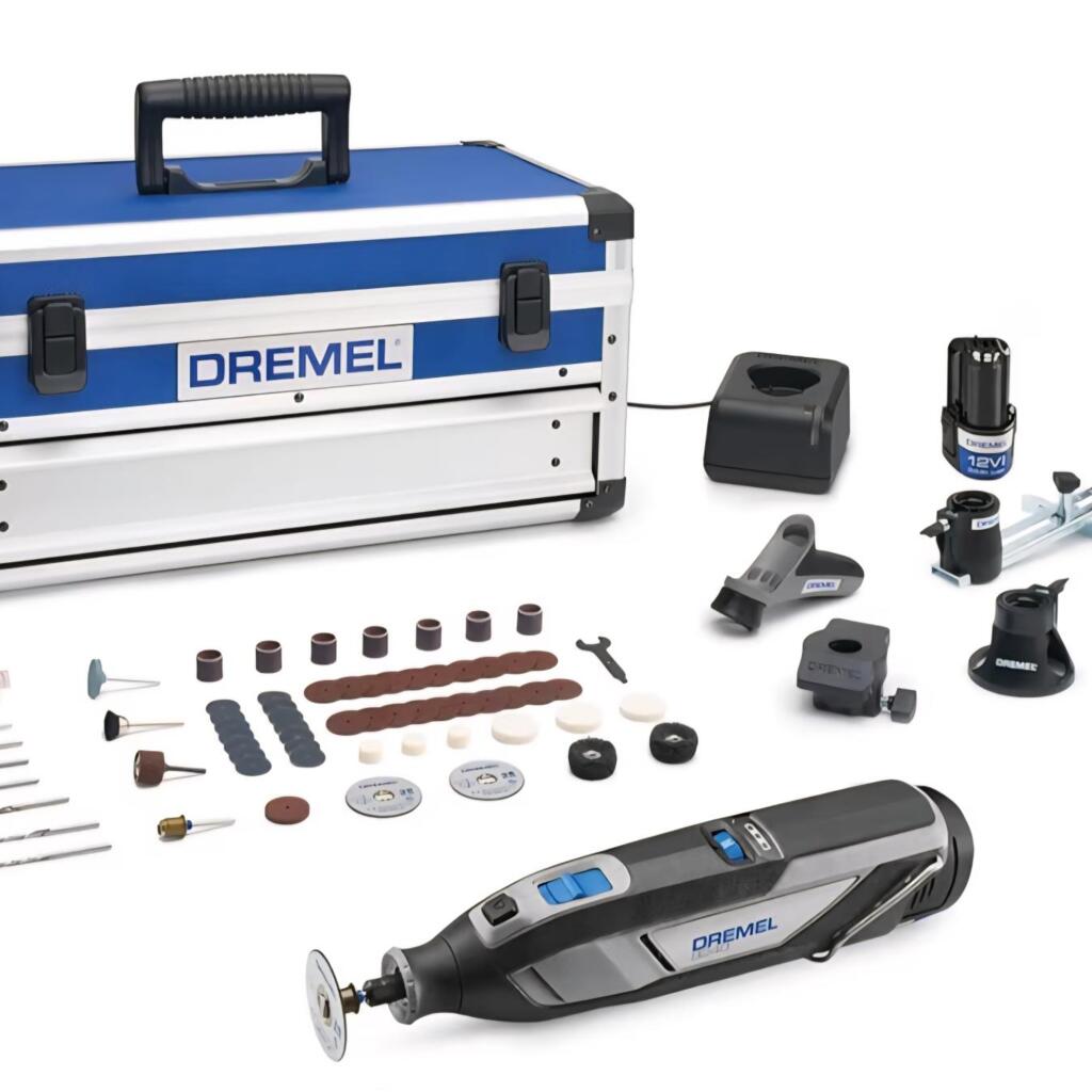 Dremel Outil rotatif sans fil, batterie Lithium-Ion 12V 2Ah - Outil multifonction avec 5 Adaptations et 65 accessoires, vitesse variable tr/min et charge rapide en coffret Platinium
