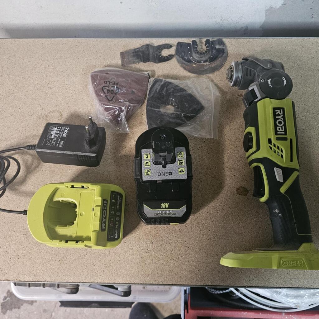 Outil multifonctions 18V ONE+ avec une batterie et chargeur.