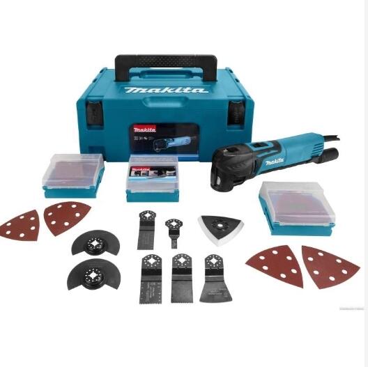 Outil multifonction fournie avec lames bois et métal, disque à poncer dans sa caisse d’origine.