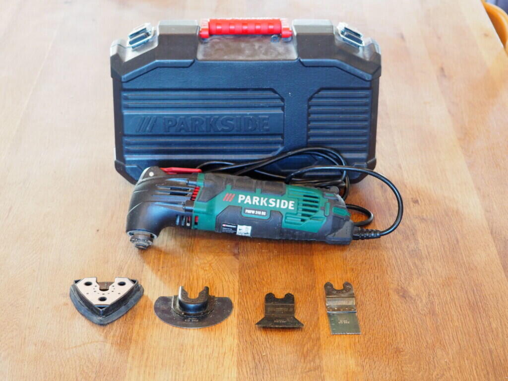 Cet outil est un outil électroportatif multifonction oscillant de la marque PARKSIDE, conçu pour effectuer une grande variété de travaux avec une seule machine, simplement en changeant les embouts.