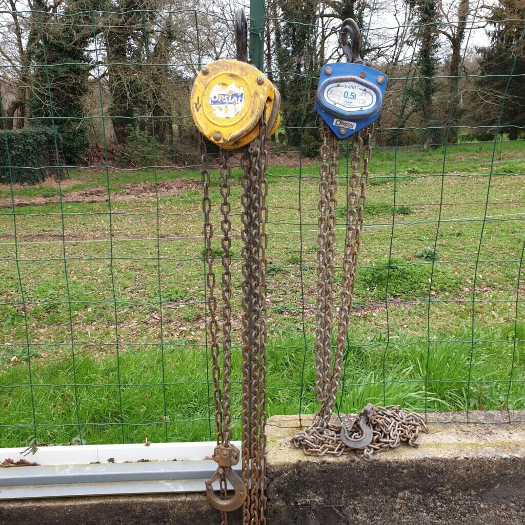 Loue 2 palans de 500 a chaine 6 ou 3 mètres 10€ pièces.