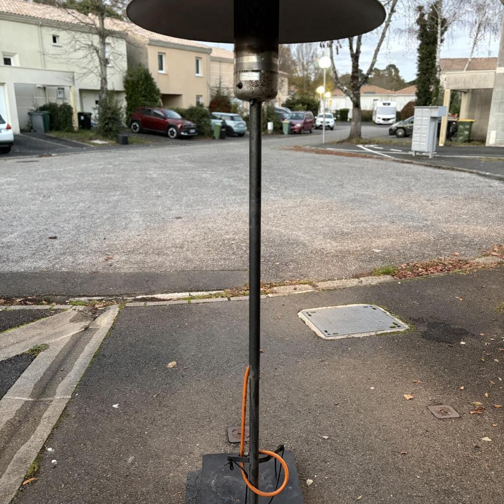 Parasol chauffant, idéal pour pouvoir profiter dehors en cette période hivernal. Esthétiquement le garage ne lui fait pas de cadeau. Mais sinon en bonne état général.