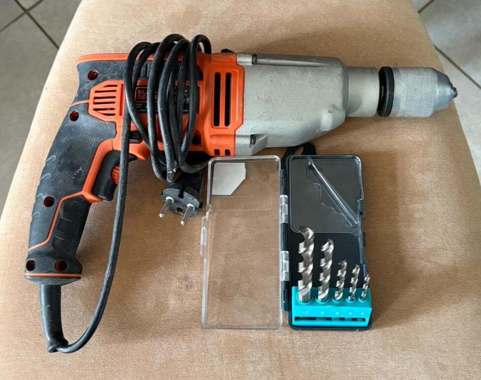 À louer : perceuse Black et Decker W avec un set de 5 forets métaux. Idéal pour tous tes projets de bricolage.