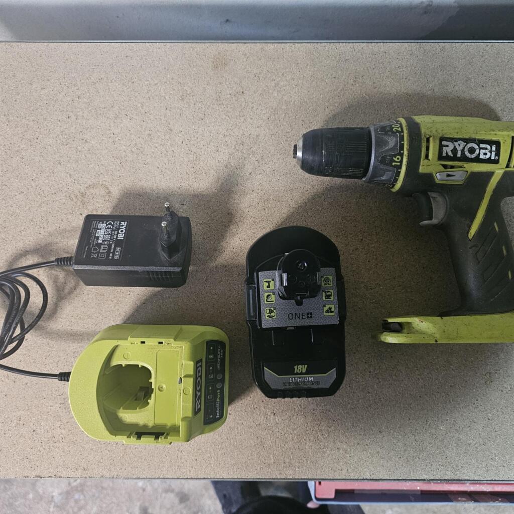 Perceuse-visseuse 2 vitesses 18V ONE+ avec une batterie et un chargeur.