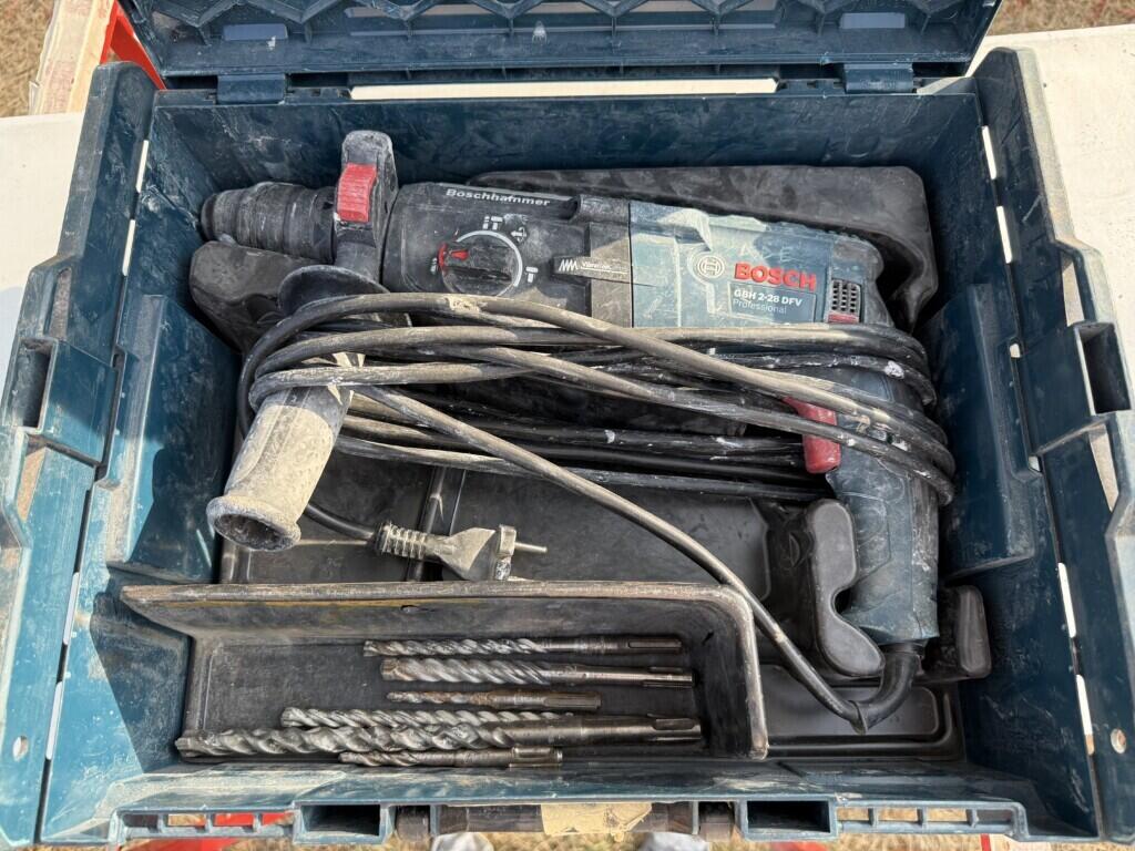 Perceuse à percussion filaire Bosch, en bon état. Dans sa boîte avec des forêts béton sds plus diam 6/8/10/12/14.