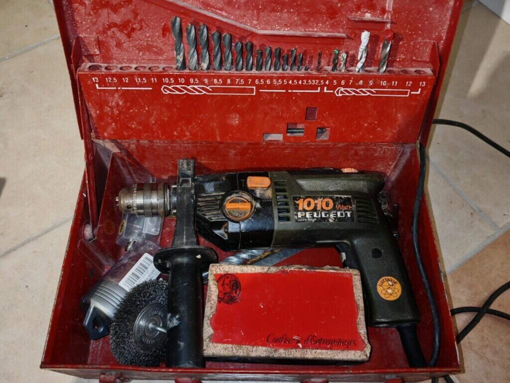 Très bonne perceuse à percussion, débrayable, puissante, vitesse réglable, gestion électronique, avec forets métaux et béton, autres types de forets sur demande.