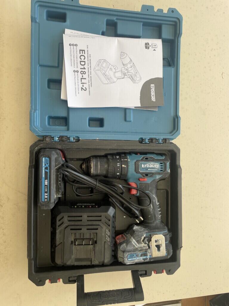 Perceuse à percussion sans fil brushless Erbauer ECD18-Li-2 18V – 2x4Ah