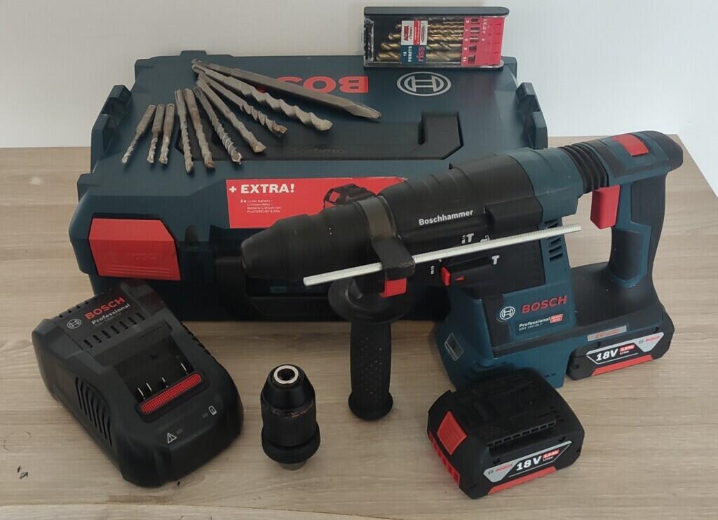 Bonjour, je propose à la location cette perceuse à percussion professionnelle conçue pour des applications de perçage et burinage dans le béton, la maçonnerie, le bois et le métal.