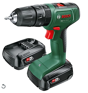 Un même outil pour tout : pour visser et percer sans ou avec percussion. Mandrin monobague polyvalent de 13 mm pour un changement facile de foret et d’embout de vissage. • L’engrenage 2 vitesses et les 20 positions de présélection de couple permettent d’adapter la puissance et la vitesse de rotation en fonction du type d’application • Pour visser, percer dans le bois, les métaux et les plastiques et pour percer avec percussion dans la maçonnerie • Très bonne maniabilité grâce à la forme fine et ergonomique • Éclairage LED pour une bonne visibilité dans les endroits peu éclairés • POWER FOR ALL : une batterie et un chargeur suffisent pour tout un système d’outils de la gamme Home & Garden Poids : 1,3kg. Livré avec: 2 batteries (2,0 Ah), chargeur AL 1820 CV, embout de vissage, mallette de transport. Garantie 2 ans et 1 an d’extension (si inscription en l
