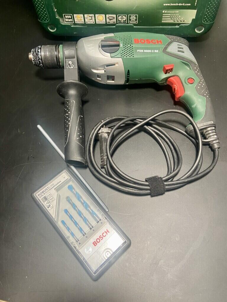 Je vous propose la perceuse filaire Bosch PSB 9000 RE, un outil puissant de 900 watts parfait pour vos travaux de perçage les plus exigeants. Avec son mandrin automatique, le changement des forets est rapide et facile. Elle est fournie avec une boîte de forets de haute qualité (tailles 4, 5, 6 et 8 mm). Idéale pour percer divers matériaux.