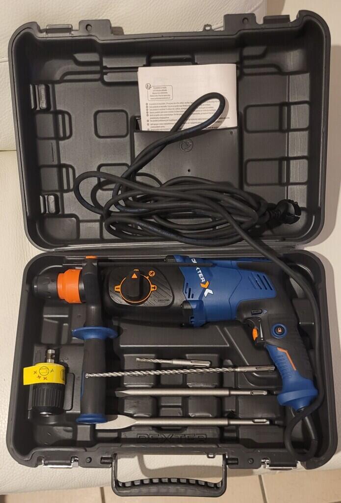 Ce marteau perforateur 800W DEXTER d'une puissance de frappe de 2.9J est idéal pour des petits travaux grâce à ses 4 fonction : perçage (dans du bois jusque 30mm de diamètre ou dans du métal jusque 13mm), perçage avec percussion (dans du béton ou de la brique jusque 26mm de diamètre), burinage ou encore burinage avec accessoire libre (ce qui permet alors à ce dernier de s'adapter librement à la ligne du sol, comme lors du décollement de carrelage).