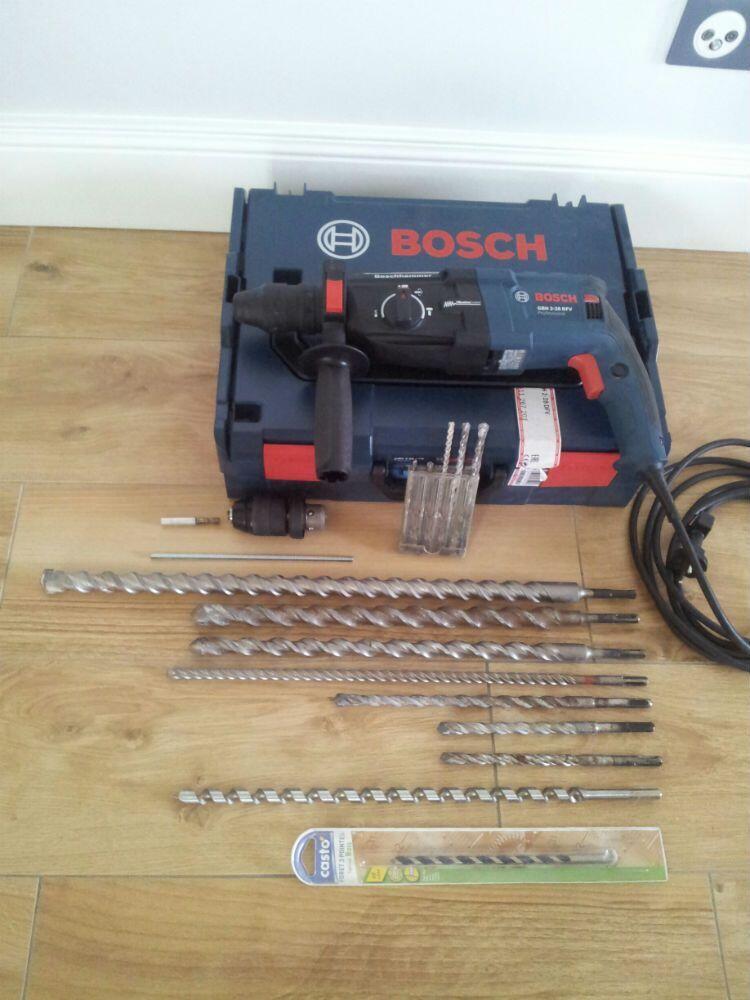 En bon état, mandrin SDS, forêt dia. 5,6,8,10,12,14,16,25 tous en SDS et trépan pour plâtre dia.64 idéal prise encastrée.