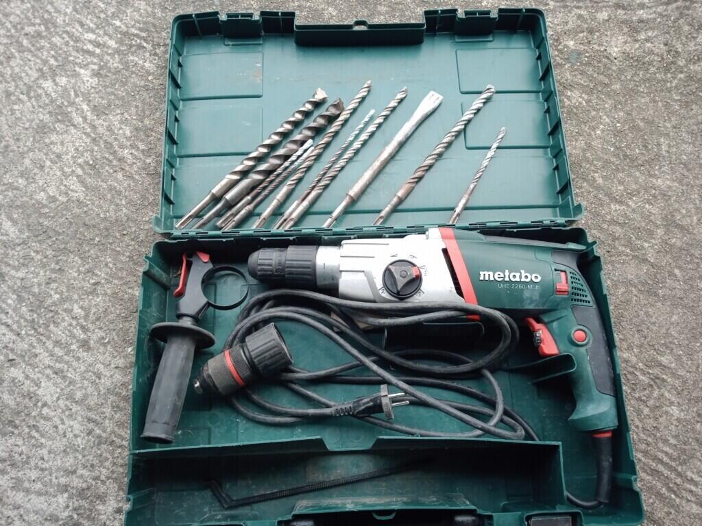 Perforateur METABO. Fonctionne très bien. boite d'origine avec 10 méches + 2 têtes + poignée verticale.