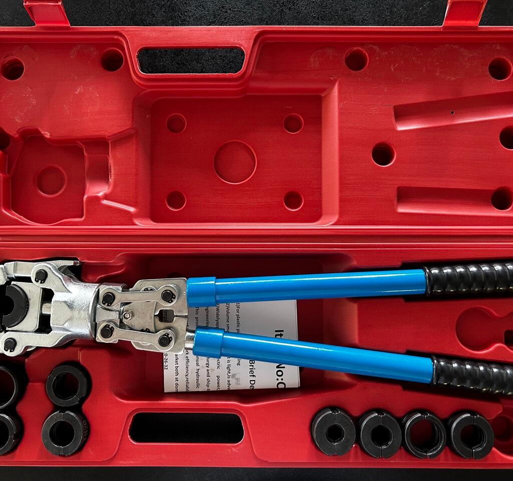 Mise à disposition d'une pince à sertir pour raccords Multicouche et PER équipé de 8 mâchoires pour le sertissage des raccords diamètres 12 | 16 | 20 | 26