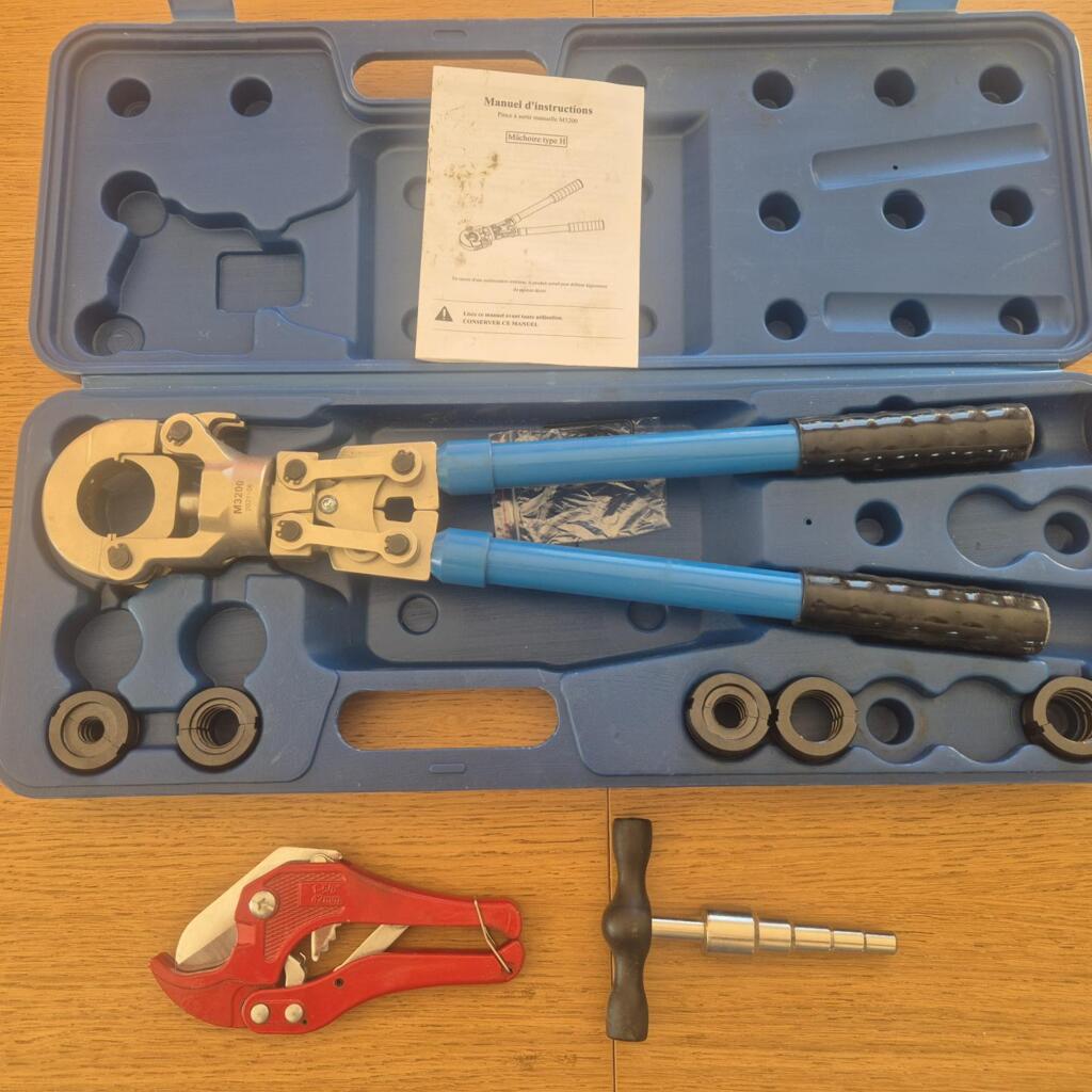 Fournit avec pince coupe tube + pièces pour réformer le tube en forme avant sertissage