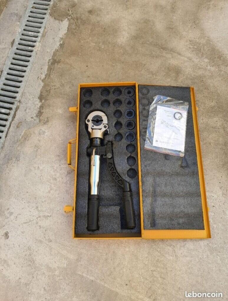 Salut je loue cette pince à sertir hydraulique pour multicouche et PER avec emprunte TH 12, 16, 20, 26 et 32.