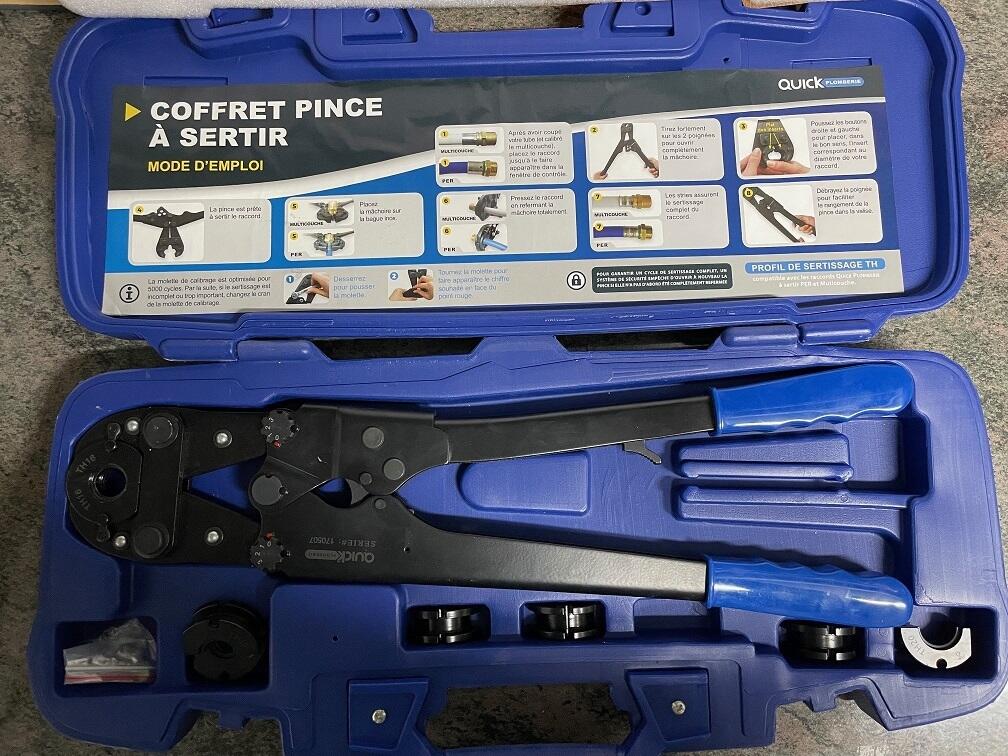 Pince à sertir pour PER et Multicouche avec raccord « Quick Plomberie » acheté chez Leroy Merlin.