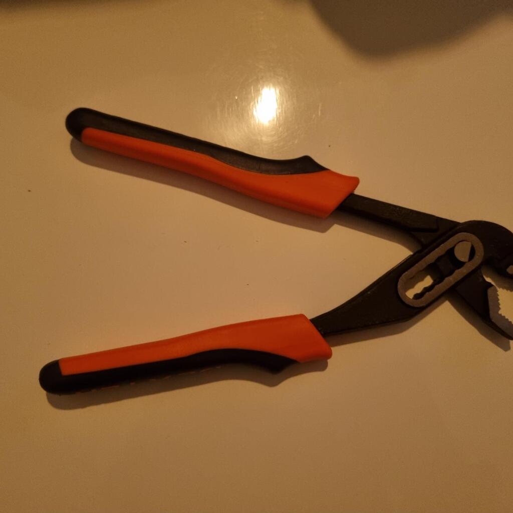 Manche antidérapant, idéal pour le maintien des pièces pour la soudure ou le perçage ou pour déboulonner. Son point d'articluation permet de régler la position et vous offre ainsi une plus large ouverture de pince.