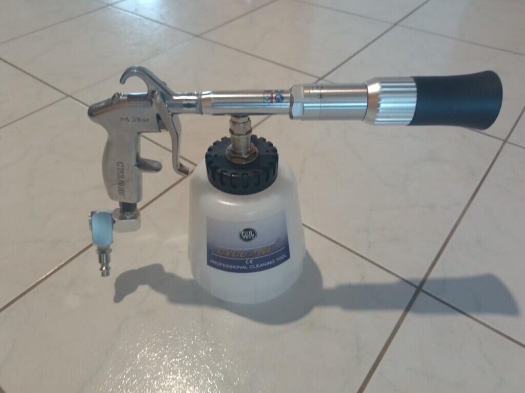 Le Cyclone Super Turbo Booster est l’ un des Tornador le plus élaboré . Son pistolet de nettoyage fonctionnant à l’air comprimé, sans eau et sans électricité.